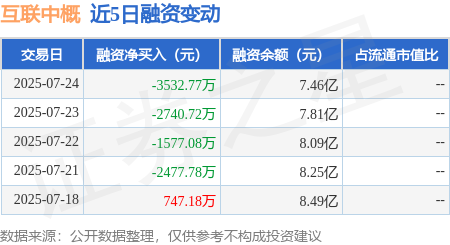 本站消息,7月24日,互联中概(159605)融资买入4718.87万元,融资偿还8251.65万元,融资净卖出3532.77万元,融资余额7.46亿元。